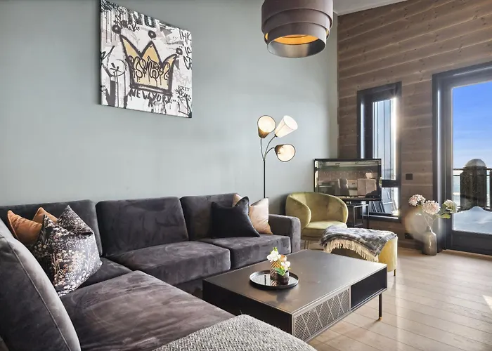Oferecendo piscina, apartamento Riddergaardens Utsikt Apartamento está localizado a 0.7 km de Kjelkeheisen. Interskiheisen fica a 5 minutos de carro de apartamento.